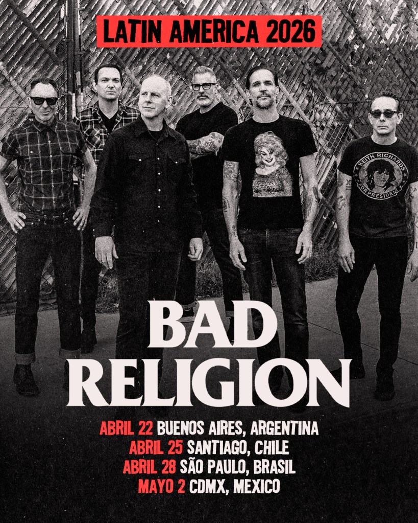 Con más de 40 años en la carretera, Greg Graffin, Brett Gurewitz, Jay Bentley, Brian Baker, Mike Dimkich y Jamie Miller demuestran una vez más que el punk inteligente y melódico no conoce fronteras. «Bad Religion Latin America 2026» se perfila no solo como una serie de conciertos, sino como un reencuentro cultural, un recordatorio de la vitalidad del género y una celebración de una de las bandas más importantes en la historia del rock. Las entradas seguramente volarán.